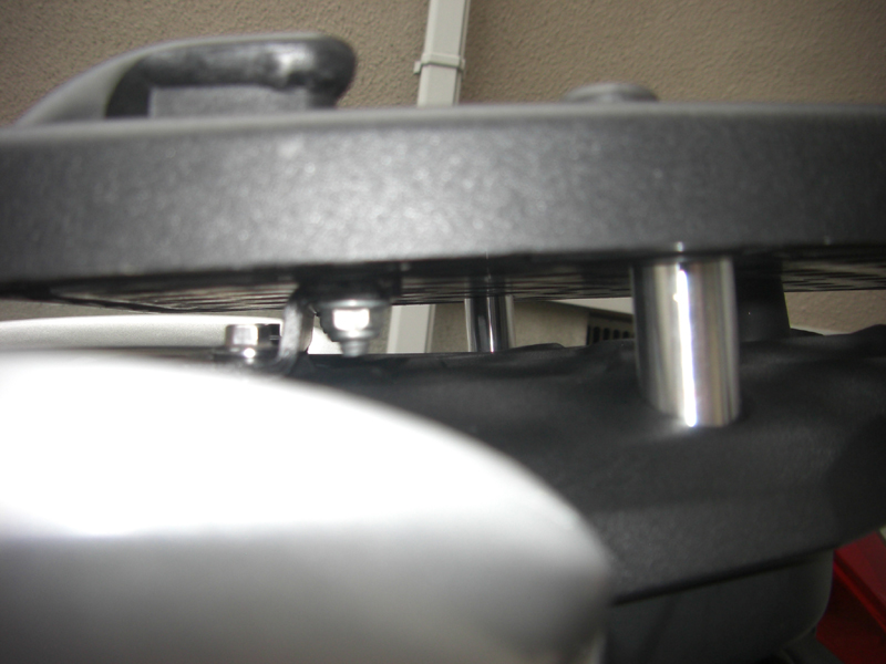 ステーを取り付けた様子がこんな感じです。後ろ側のゴム製クッションは、下側からボルトでトップベースを固定しそのクッションになります。
